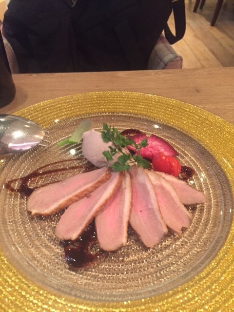 鴨の燻製とドイツ産赤ワインのオバツダ添え