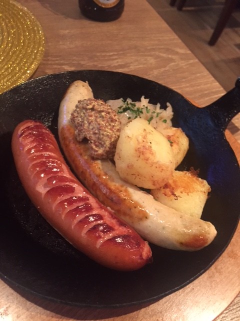 定番のフランクフルトと白ソーセージの組み合わせで、噛むとジュわっと肉汁があり・・・ビールが進みます